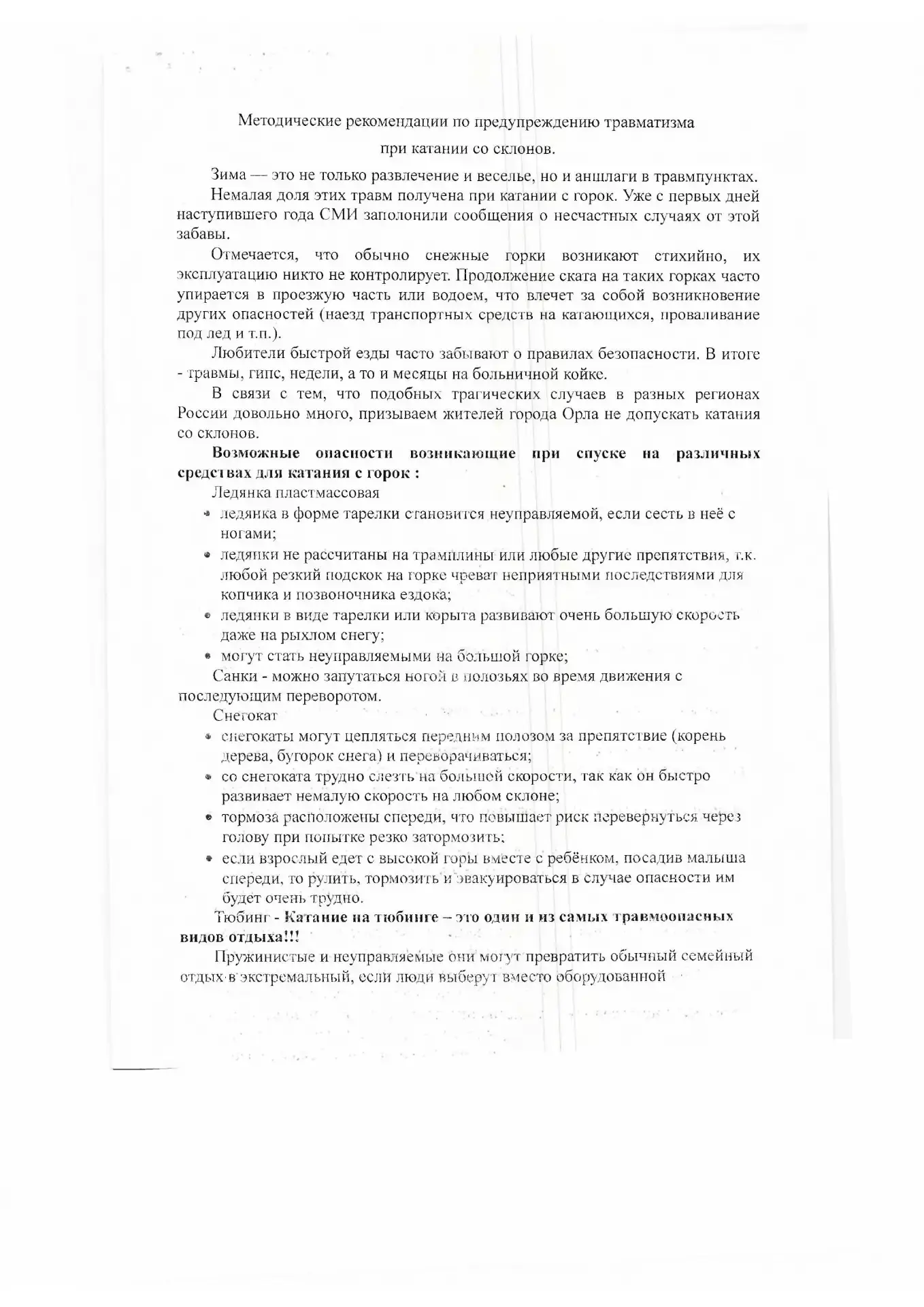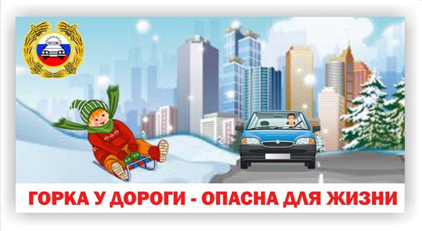 Кататься с горок рядом с проезжей частью категорически недопустимо, так как это смертельно опасно из-за риска выезда под колеса автомобилей. Необходимо выбирать для катания только специально оборудованные места или горки, удаленные от дорог, водоемов и железнодорожных путей! Уважаемые родители, помните, что на вас лежит личная ответственность за жизнь и здоровье ваших детей!